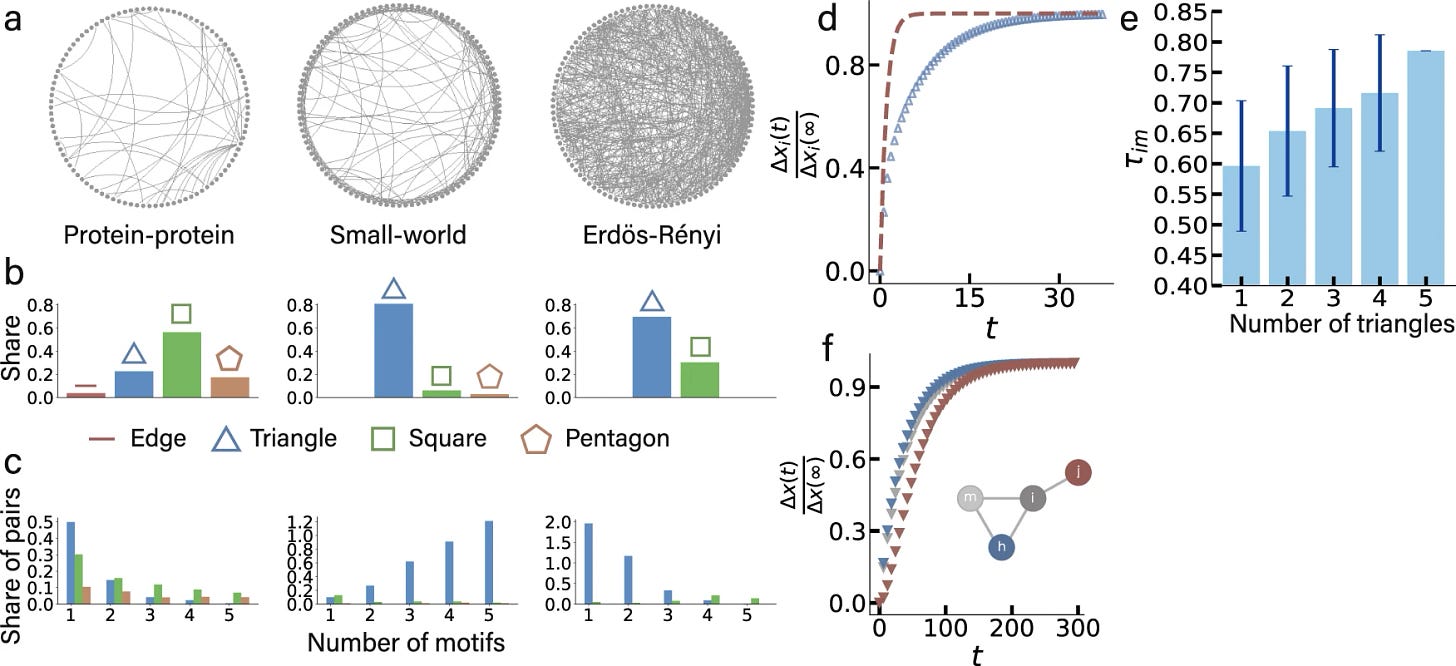 Many collective phenomena such as epidemic spreading and cascading failures in socioeconomic systems on networks are caused by perturbations of the dynamics. How perturbations propagate through networks, impact and disrupt their functions may depend on the network, the type and location of the perturbation as well as the spreading dynamics. Previous work has analyzed the retardation effects of the nodes along the propagation paths, suggesting a few transient propagation "scaling” regimes as a function of the nodes’ degree, but regardless of motifs such as triangles. Yet, empirical networks consist of motifs enabling the proper functioning of the system. Here, we show that basic motifs along the propagation path jointly determine the previously proposed scaling regimes of distance-limited propagation and degree-limited propagation, or even cease their existence. Our results suggest a radical departure from these scaling regimes and provide a deeper understanding of the interplay of self-dynamics, interaction dynamics, and topological properties.