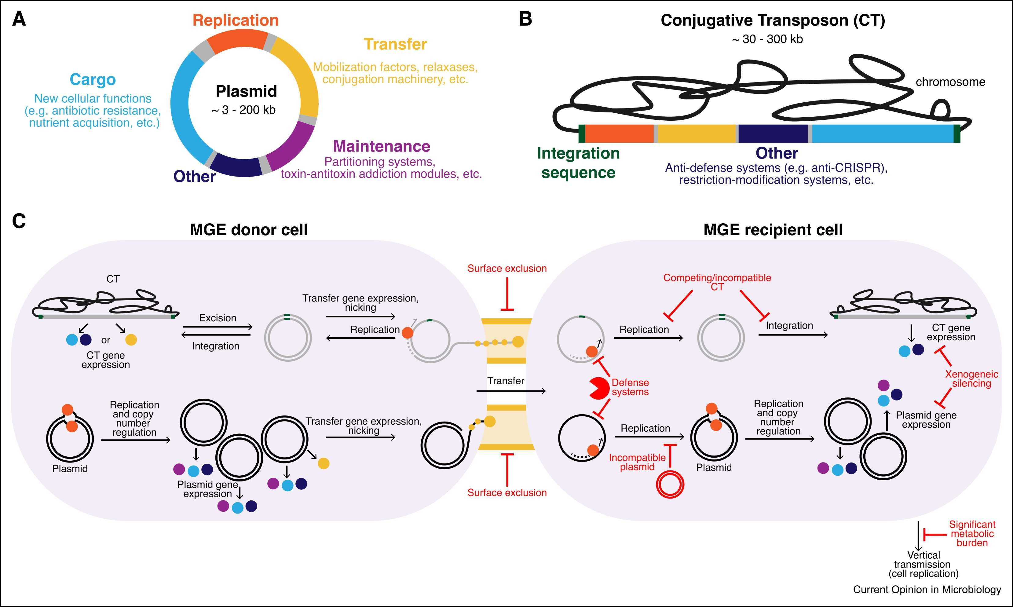 The human intestinal microbiota is a dynamic ecosystem shaped by extensive horizontal gene transfer, particularly in individuals from industrialized populations. In this review, we discuss recent advances in our understanding of how mobile genetic elements (MGEs) contribute to microbial ecology and evolution in this diverse community, focusing on MGEs carrying fitness-conferring genes. Bacteroidales species can colonize individuals for decades and serve as major hubs for MGE exchange. Most MGEs are highly variable across individuals and geographies. Occasionally, conserved MGEs can spread across geography and lifestyles. Functional characterizations of MGEs reveal their roles in antibiotic resistance, interbacterial antagonism, biofilm formation, immune evasion, and nutrient acquisition, among others. Substantive progress in our understanding of MGEs in the gut microbiome offers promising avenues for therapeutic microbiome interventions. However, major challenges remain in functional prediction, host-MGE linkage, and experimental characterization.