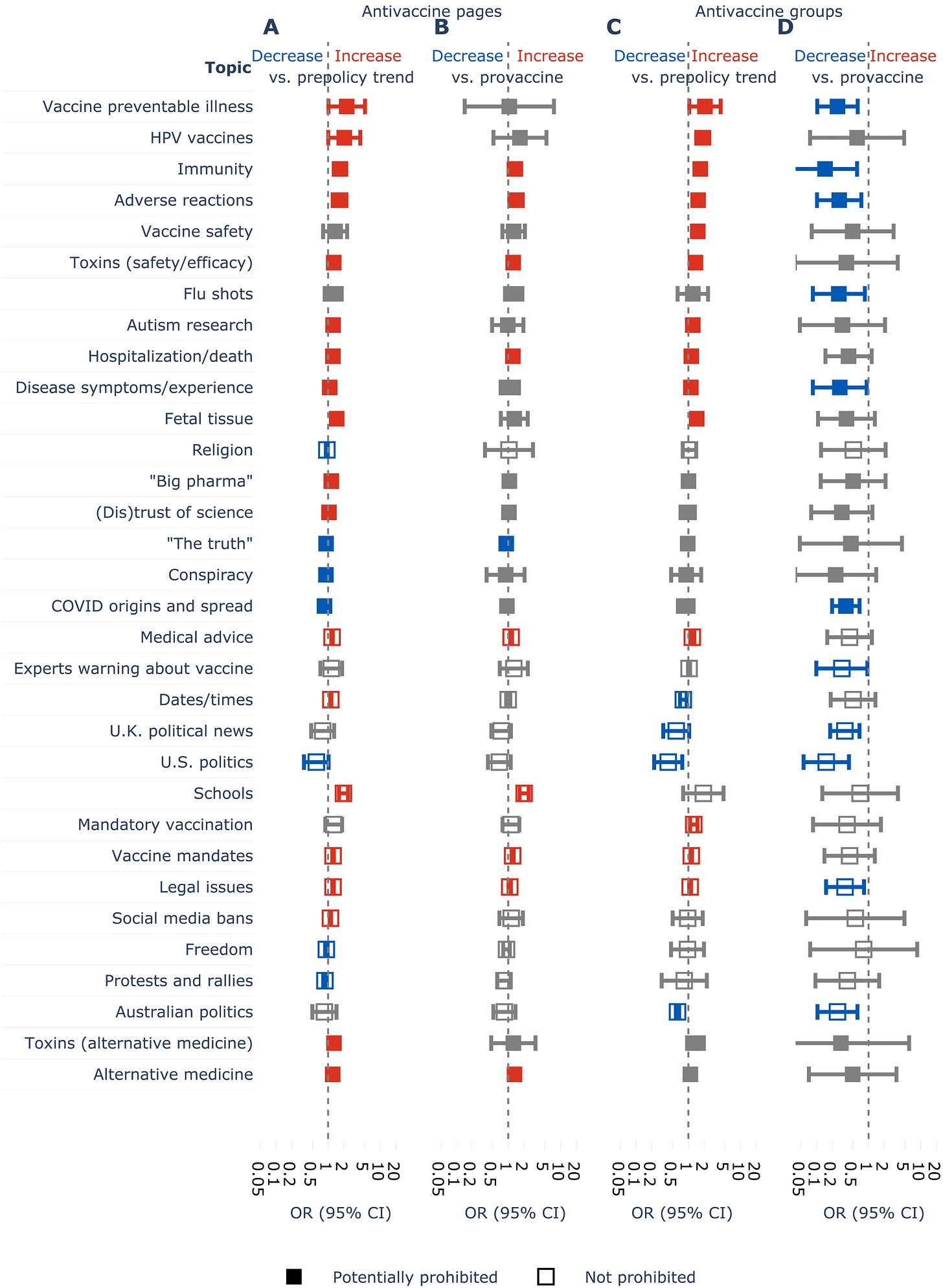 Online misinformation promotes distrust in science, undermines public health, and may drive civil unrest. During the coronavirus disease 2019 pandemic, Facebook—the world’s largest social media company—began to remove vaccine misinformation as a matter of policy. We evaluated the efficacy of these policies using a comparative interrupted time-series design. We found that Facebook removed some antivaccine content, but we did not observe decreases in overall engagement with antivaccine content. Provaccine content was also removed, and antivaccine content became more misinformative, more politically polarized, and more likely to be seen in users’ newsfeeds. We explain these findings as a consequence of Facebook’s system architecture, which provides substantial flexibility to motivated users who wish to disseminate misinformation through multiple channels. Facebook’s architecture may therefore afford antivaccine content producers several means to circumvent the intent of misinformation removal policies.